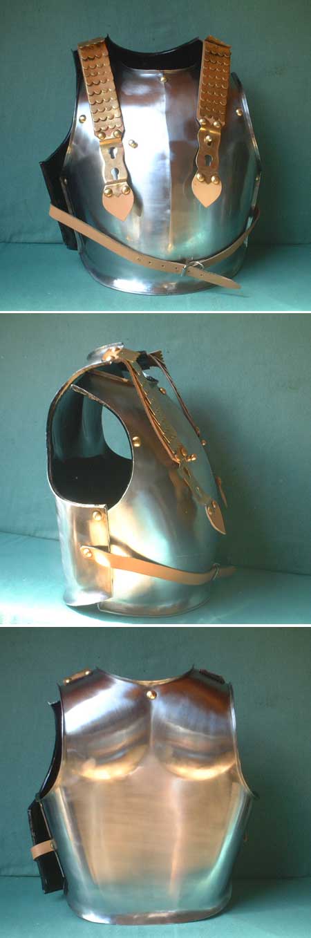 | So ein KRagen ist nicht sonderlich teuer. Wobei ich persönlich eben diesen als wirklich unangenehm empfinde. Ein Tipp wäre da, die Riemen für die Schultern direkt an den Küraß machen zu lassen (oder aber den Gambeson wie ich es habe) |
